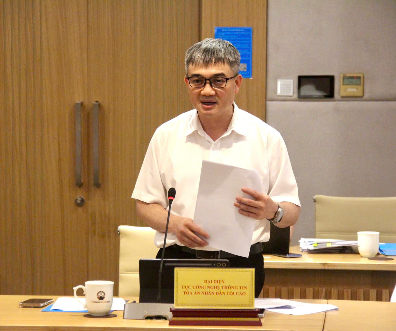 Phát biểu tại buổi làm việc, ông Phạm Quốc Hưng, Phó Chánh tòa án nhân dân tối cao cảm ơn sự đồng hành, hỗ trợ kịp thời của Bộ KH&CN trong quá trình triển khai chuyển đổi số của Tòa án nhân dân tối cao, đặc biệt trong phát triển hạ tầng, kết nối, chia sẻ dữ liệu và bảo đảm an toàn, an ninh thông tin.